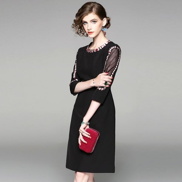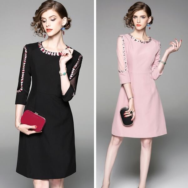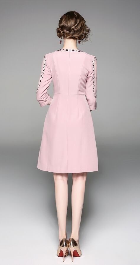 パーティー/結婚式/ドレス/お呼ばれ/ひざ丈/七分袖/フェミニン