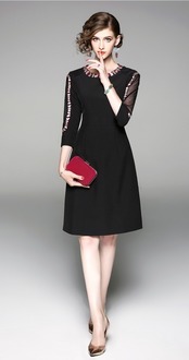 形もデザインも上品なパーティードレスです。年齢やシーンを問わず幅広く着れるので1枚持っていると便利です。
