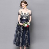 パーティードレス 半袖シースルー花柄刺繍入りレースフレアドレス エレガント 大人 上品 かわいい 清楚 きれい 結婚式二次会 お呼ばれ 2018年新作 婚活パーティー フォーマルドレス 披露宴 結婚式ドレス ウェディング 結婚式 謝恩会 パーティードレス 発表会 演奏会 記念日