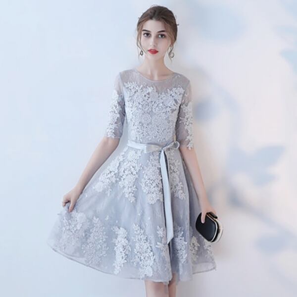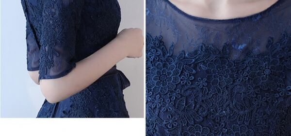 透け感のあるチュール素材のパーティー向けドレス。エレガントな花柄のレース刺繍入りで結婚式やパーティーなどのお呼ばれにもオススメです。