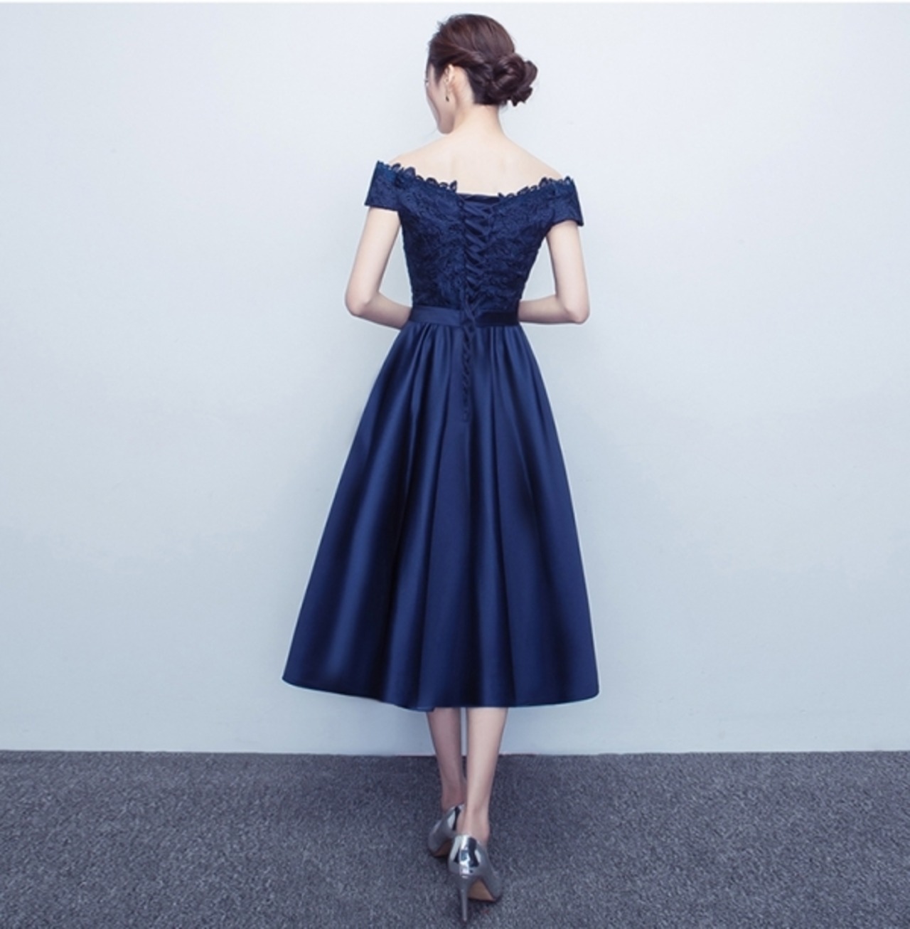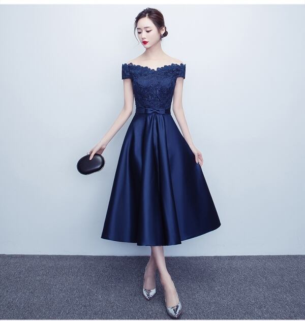 ミディ丈/刺繍/花柄/リボン付き/オフショル/レース/Aライン/美シルエ/パーティー/結婚式/2次会