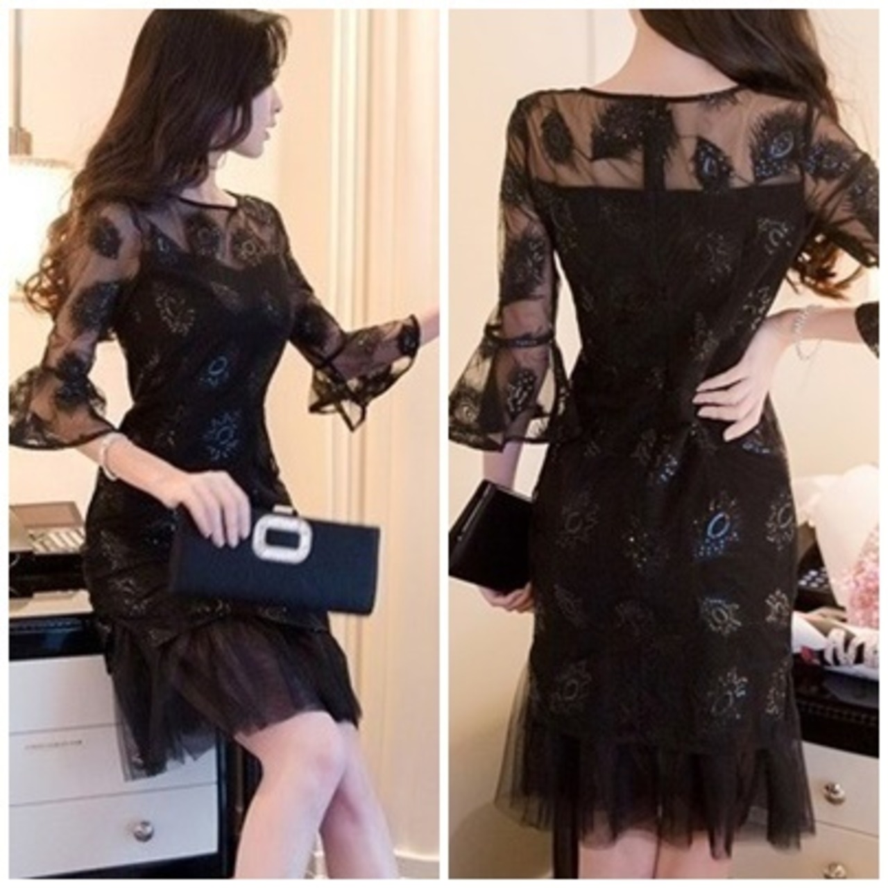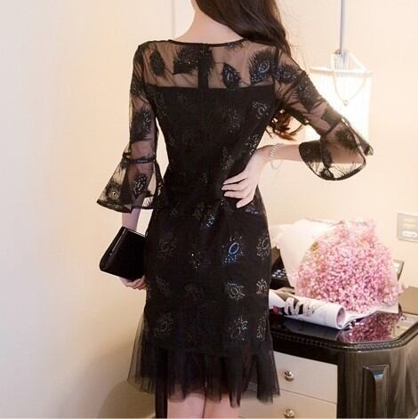 パーティードレス 大人かわいい総レース膝丈ドレス エレガント 大人 上品 かわいい 清楚 きれい 結婚式二次会 お呼ばれ 2018年新作 婚活パーティー フォーマルドレス 披露宴 結婚式ドレス ウェディング 結婚式 謝恩会 発表会 演奏会 記念日【D44】