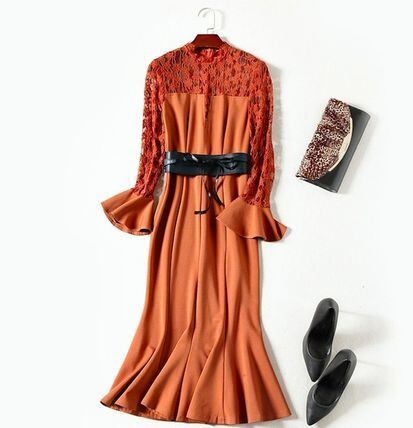 落ち着いた色とデザインがとても上品で、ウエストのベルトが引き締めて見せてくれます。