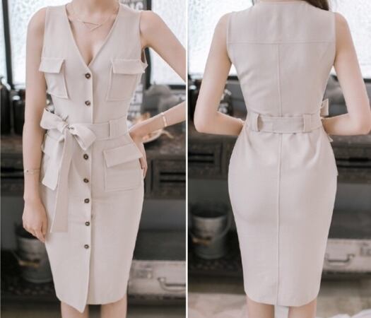 タイトなシルエット×前ボタンがボディラインを強調するセクシーなパーティードレスのご紹介です。