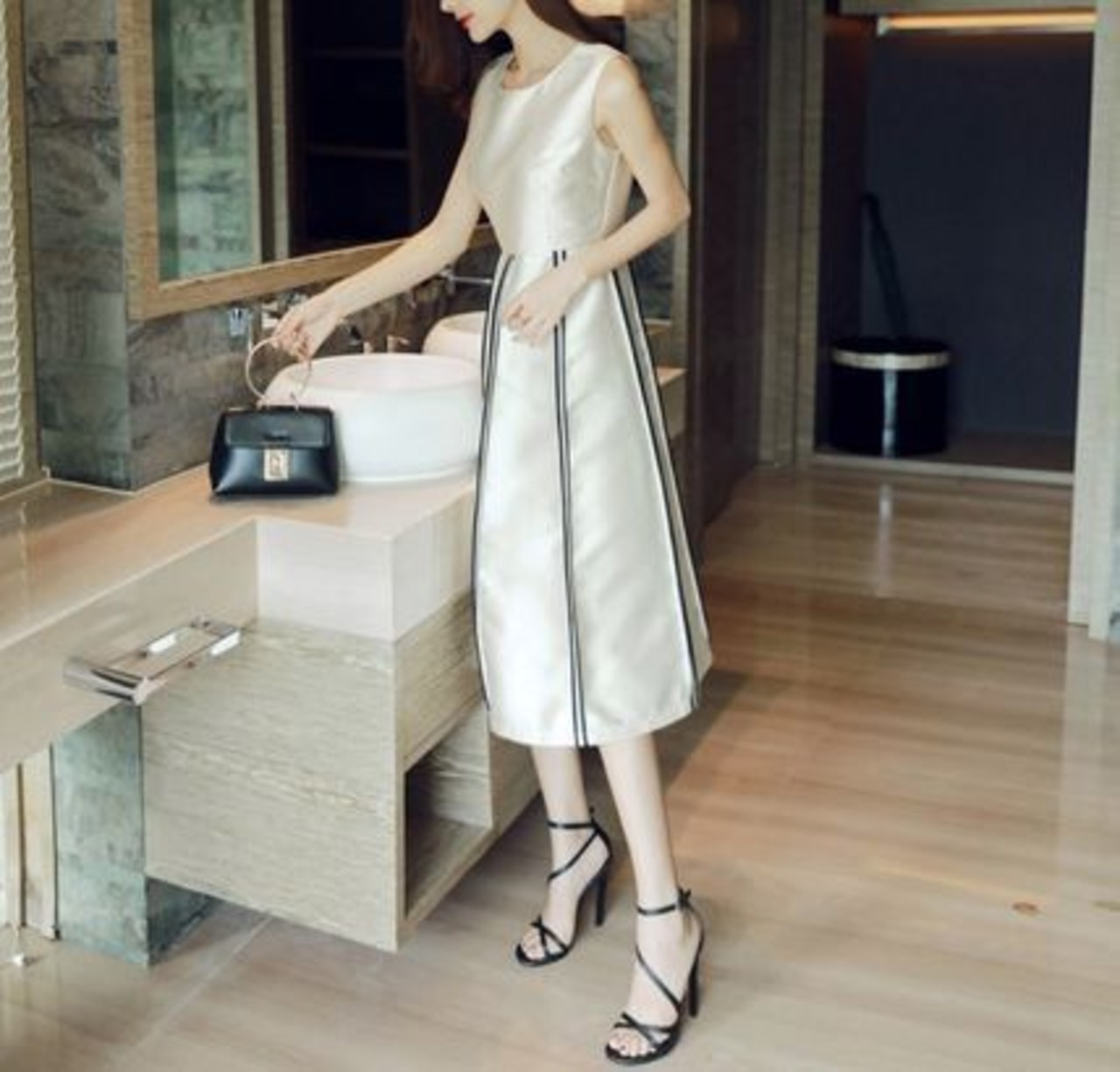 パーティードレス パールのような輝き 縦ラインでスタイルアップひざ丈コットンドレス エレガント 大人 上品 かわいい 清楚 きれい 結婚式二次会 お呼ばれ 2018年新作 婚活パーティー フォーマルドレス 披露宴 結婚式ドレス ウェディング 結婚式 謝恩会 発表会 演奏会 記念日