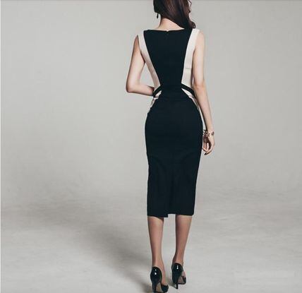 パーティードレス スタイルアップ Vネックバイカラータイトワンピースドレス エレガント 大人 上品 かわいい 清楚 きれい 結婚式二次会 お呼ばれ 2018年新作 婚活パーティー フォーマルドレス 披露宴 結婚式ドレス ウェディング 結婚式 謝恩会 発表会 演奏会 記念日【D85】