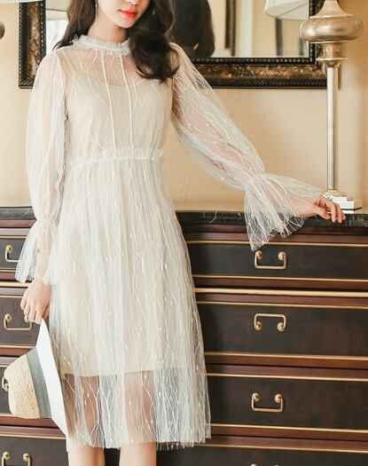 パーティードレス 透け感で大人キュートなフェアリーワンピースドレス エレガント 大人 上品 かわいい 清楚 きれい 結婚式二次会 お呼ばれ 2018年新作 婚活パーティー フォーマルドレス 披露宴 結婚式ドレス ウェディング 結婚式 謝恩会 発表会 演奏会 記念日【D93】