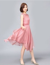 パーティードレス シフォンがエレガントなノースリーブイブニングドレス ☆ ミモレ丈 ウエストマーク フェミニン エレガント 大人 上品 かわいい 清楚 きれい 結婚式二次会 お呼ばれ 2018年新作 婚活パーティー フォーマルドレス 披露宴 結婚式ドレス ウェディング 結婚式 謝恩会 パーティードレス 発表会 演奏会 記念日【604】