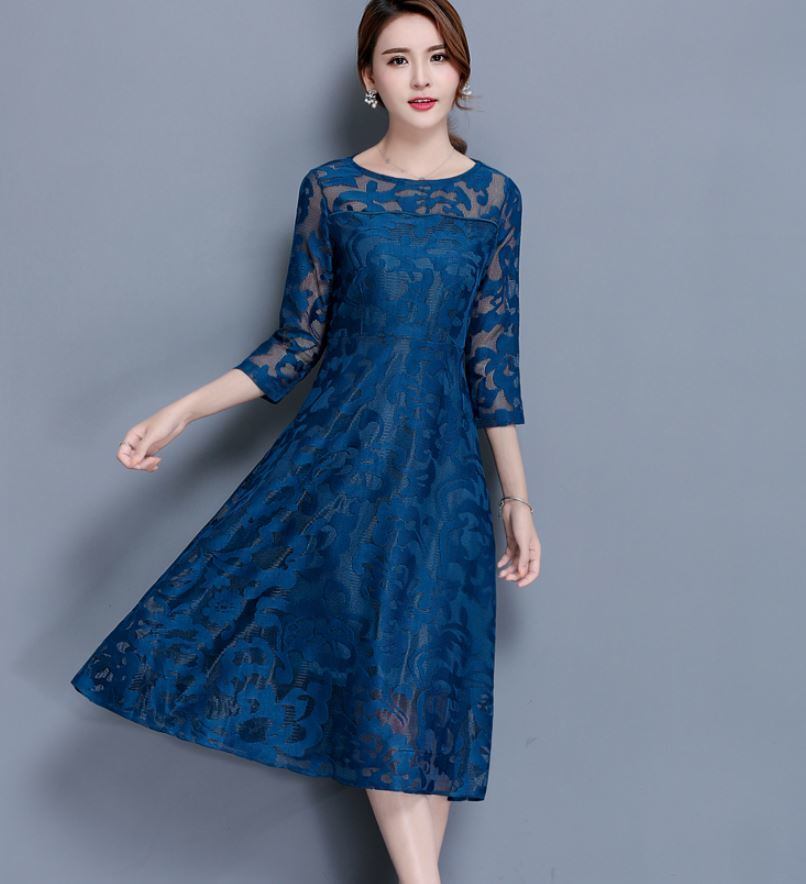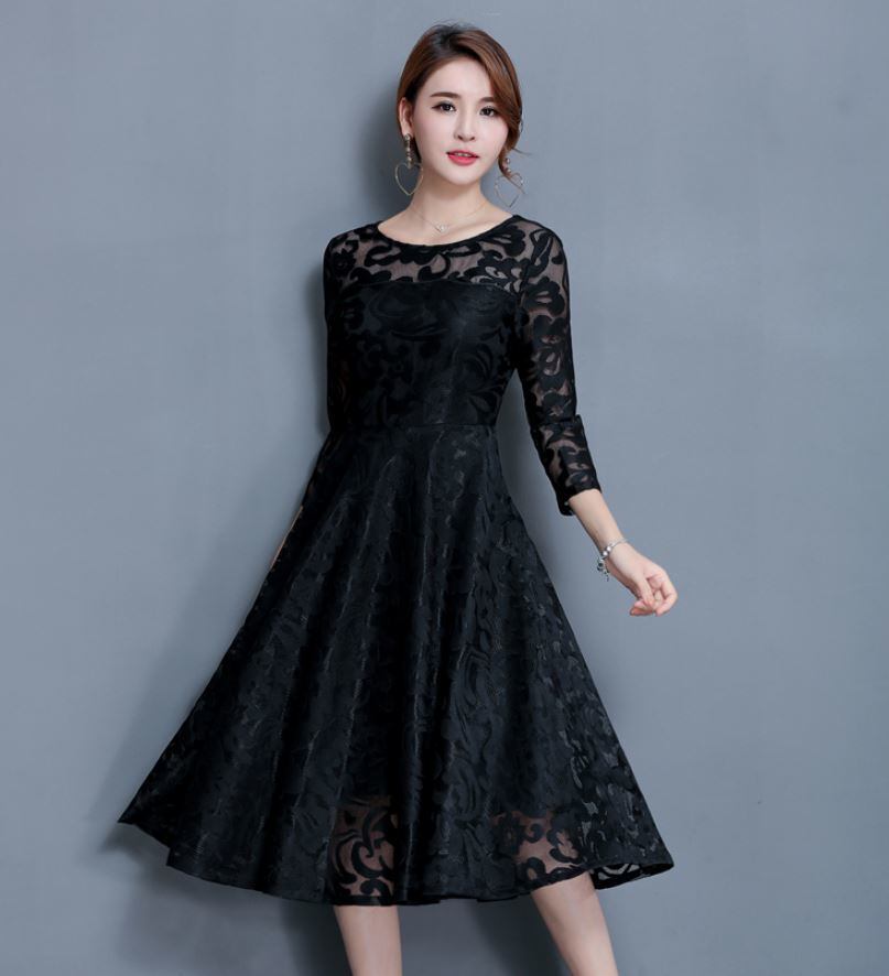 エレガントでシンプル☆花柄レースのクルーネック 長袖ロングスカート イブニングドレス☆エレガント 大人 上品 かわいい 清楚 きれい 結婚式二次会 お呼ばれ 2018年新作 婚活パーティー フォーマルドレス 披露宴 結婚式ドレス ウェディング 結婚式 謝恩会 パーティードレス 発表会 演奏会 記念日 【613】