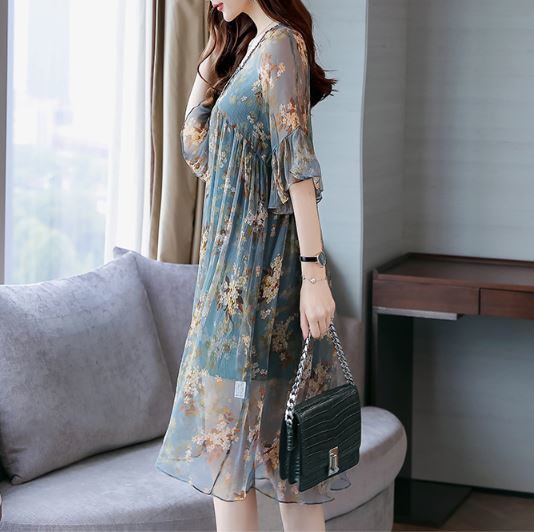 シースルー 花柄レースがかわいいミモレ丈 半袖ワンピース ☆エレガント 大人 上品 かわいい 清楚 きれい 結婚式二次会 お呼ばれ 2018年新作 婚活パーティー フォーマルドレス 披露宴 結婚式ドレス ウェディング 結婚式 謝恩会 パーティードレス 発表会 演奏会 記念日 【300】