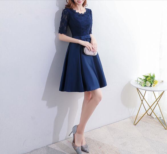 五分袖花柄レース☆Aラインひざ丈イブニングドレス☆ エレガント 大人 上品 かわいい 清楚 きれい 結婚式二次会 お呼ばれ 2018年新作 婚活パーティー フォーマルドレス 披露宴 結婚式ドレス ウェディング 結婚式 謝恩会 パーティードレス 発表会 演奏会 記念日【419】