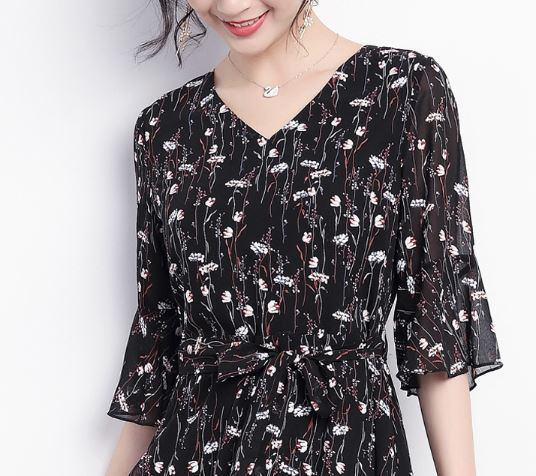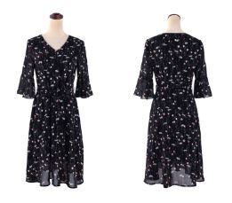 花柄 Vネック ひざ丈 シフォンのイブニングドレス 大きいサイズ エレガント 大人 上品 かわいい 清楚 きれい 結婚式二次会 お呼ばれ 2018年新作 婚活パーティー フォーマルドレス 披露宴 結婚式ドレス ウェディング 結婚式 謝恩会 パーティードレス 発表会 演奏会 記念日【303】