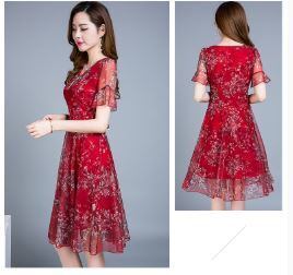 半袖 花柄レース シフォン 花柄ワンピースドレス エレガント 大人 上品 かわいい 清楚 きれい 結婚式二次会 お呼ばれ 2018年新作 婚活パーティー フォーマルドレス 披露宴 結婚式ドレス ウェディング 結婚式 謝恩会 パーティードレス 発表会 演奏会 記念日【304】