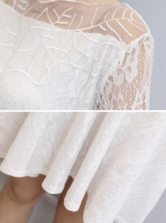 秋や冬のパーティに☆長袖の花柄レース ミニ丈ワンピースドレス☆エレガント 大人 上品 かわいい 清楚 きれい 結婚式二次会 お呼ばれ 2018年新作 婚活パーティー フォーマルドレス 披露宴 結婚式ドレス ウェディング 結婚式 謝恩会 パーティードレス 発表会 演奏会 記念日【427】