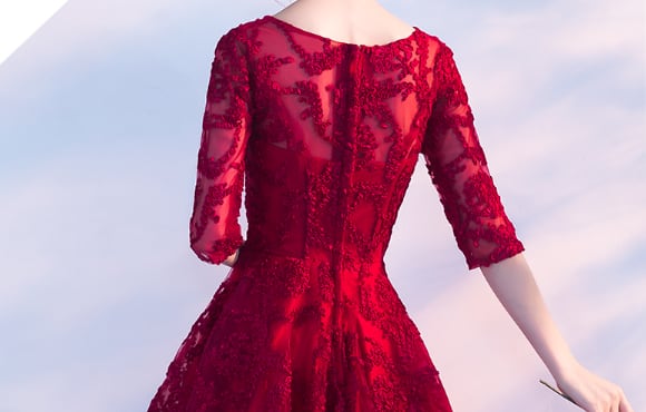 Aラインですっきり☆レースがかわいい五分袖のミモレ丈ワンピースドレス☆エレガント 大人 上品 2018年新作 フォーマルドレス ウェディング 謝恩会 結婚式 二次会 パーティー お呼ばれ お出かけ【452】