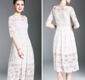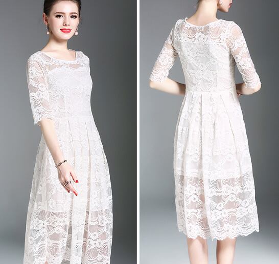 ウエストラインすっきり☆レースがかわいい五分袖ワンピースロングドレス☆エレガント 大人 上品 2018年新作 フォーマルドレス ウェディング 謝恩会 結婚式 二次会 パーティー お呼ばれ お出かけ【461】