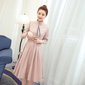 スタンドカラー フロントジップのフレア ロングスカート ワンピースドレス エレガント 大人 上品 2018年新作 フォーマルドレス ウェディング 謝恩会【627】