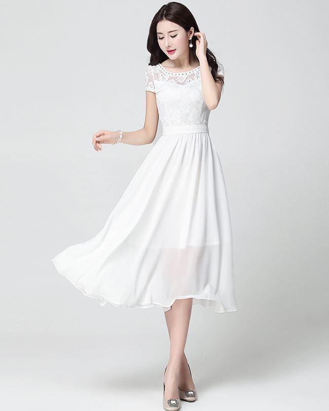 シフォン レース ロングフレアスカート ドレス エレガント 大人 上品 結婚式二次会 お呼ばれ 2018年新作 婚活パーティー フォーマルドレス 披露宴 結婚式ドレス ウェディング 結婚式 謝恩会 パーティードレス 発表会 演奏会【636】