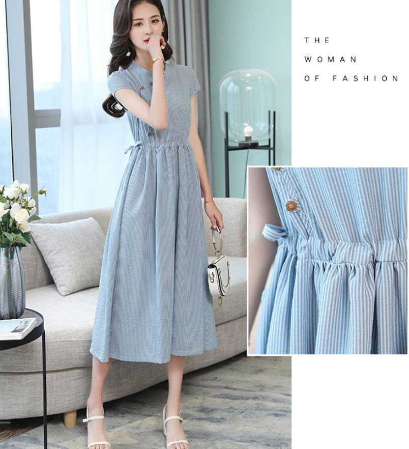 綿とリネンのストライプ 半袖 フレアスカート ドレス エレガント 大人 上品 結婚式二次会 お呼ばれ 2018年新作 婚活パーティー フォーマルドレス 披露宴 結婚式ドレス ウェディング 結婚式 謝恩会 パーティードレス 発表会 演奏会【638】