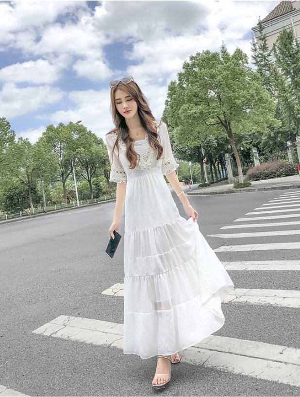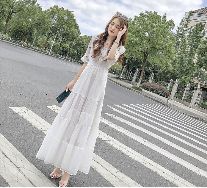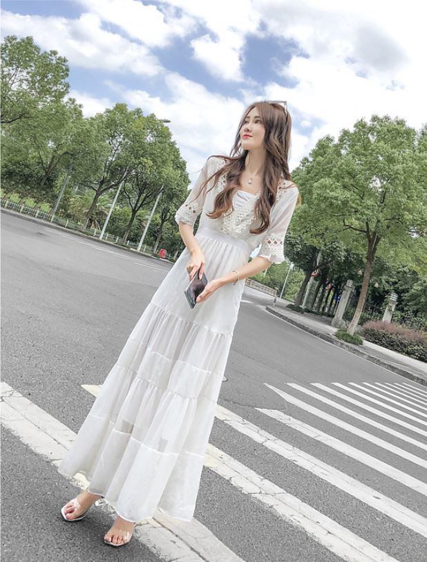 フェアリーなレースのロングスカートシフォンドレス エレガント 大人 上品 結婚式二次会 お呼ばれ 2018年新作 婚活パーティー フォーマルドレス 披露宴 結婚式ドレス ウェディング 結婚式 謝恩会 パーティードレス 発表会 演奏会【645】