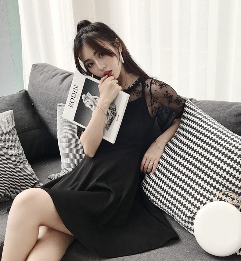 セクシーな黒いレースの半袖 ハイウエストのショートスカートドレス エレガント 大人 上品 結婚式二次会 お呼ばれ 2018年新作 婚活パーティー フォーマルドレス 披露宴 結婚式ドレス ウェディング 結婚式 謝恩会 パーティードレス 発表会 演奏会 【647】