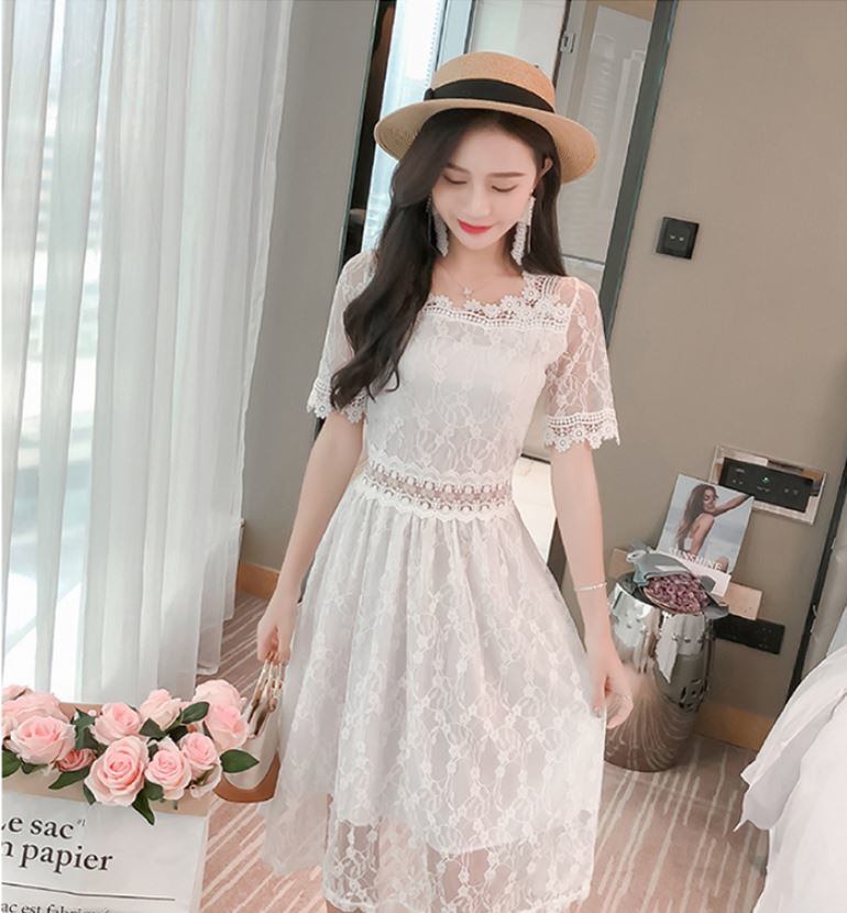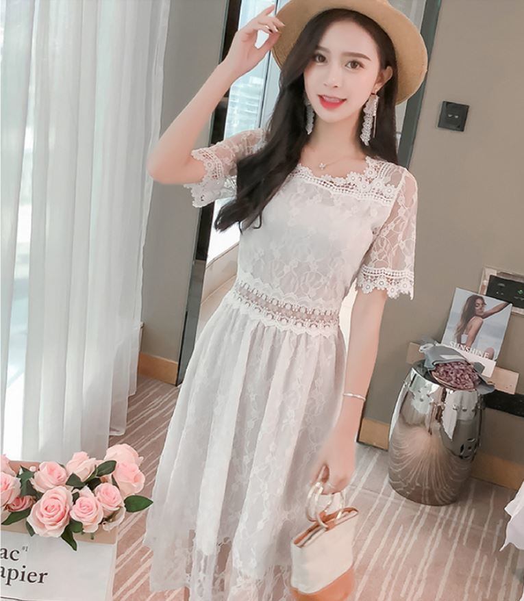 シフォン 半袖 ミニマリストレース ドレス エレガント 大人 上品 2018年新作 婚活パーティー フォーマルドレス 披露宴 結婚式ドレス ウェディング 結婚式 謝恩会 パーティードレス 演奏会 結婚式 二次会 パーティー お呼ばれ お出かけ 【651】