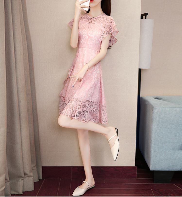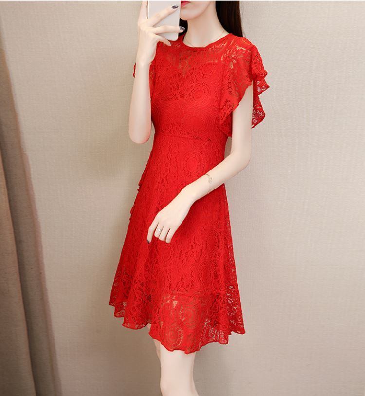 無地 フレアスリーブ 半袖 パーティードレス レース ワンピース エレガント 大人 上品 2018年新作 婚活パーティー フォーマルドレス 披露宴 結婚式ドレス ウェディング 結婚式 謝恩会 パーティードレス 演奏会 結婚式 二次会 パーティー お呼ばれ お出かけ 【656】