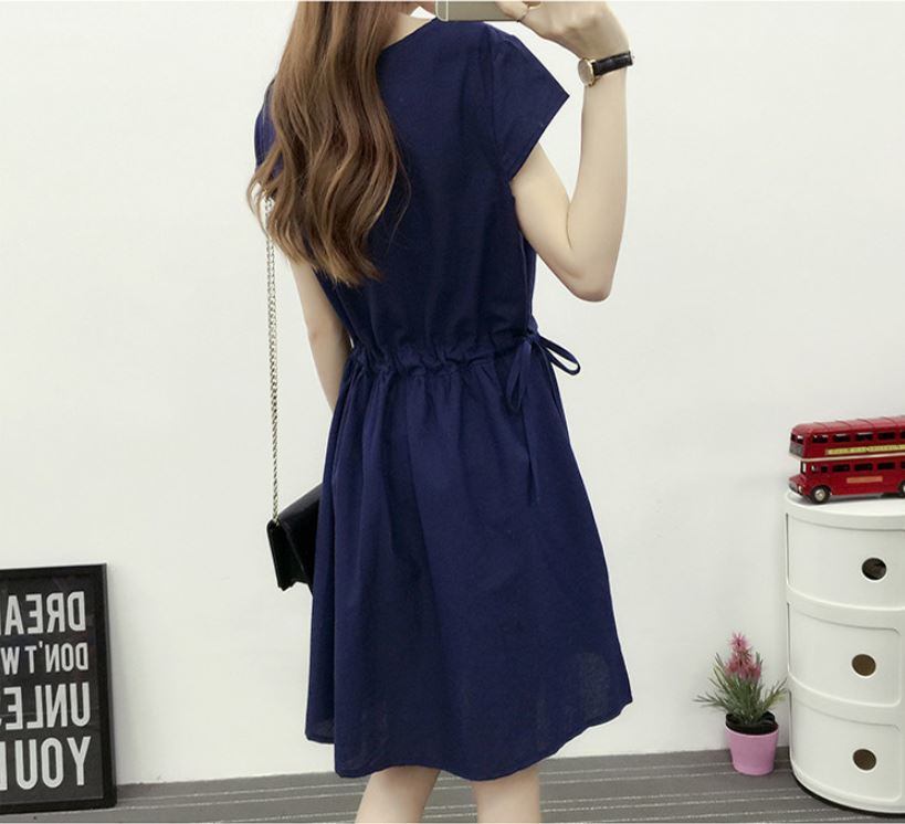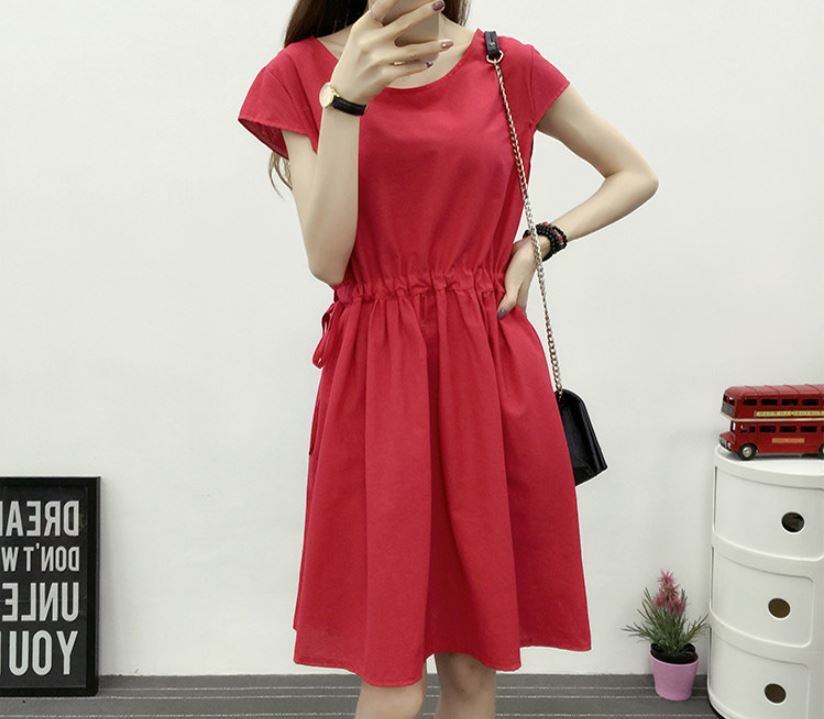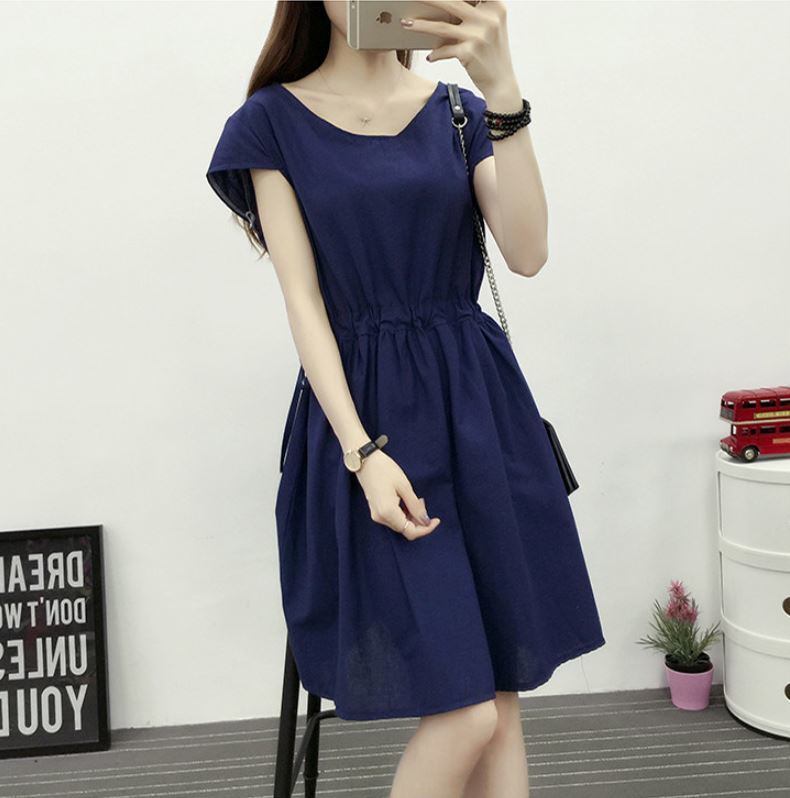 綿とリネン ショートスリーブ 無地 ドレスエレガント 大人 上品 2018年新作 婚活パーティー フォーマルドレス 披露宴 結婚式ドレス ウェディング 結婚式 謝恩会 パーティードレス 演奏会 結婚式 二次会 パーティー お呼ばれ お出かけ 【672】