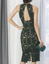 バックレス レース スリム ノースリーブ バッグヒップ ロングドレス エレガント 大人 上品 2018年新作 婚活パーティー フォーマルドレス 披露宴 結婚式ドレス ウェディング 結婚式 謝恩会 パーティードレス 結婚式 二次会 パーティー お呼ばれ お出かけ 【684】