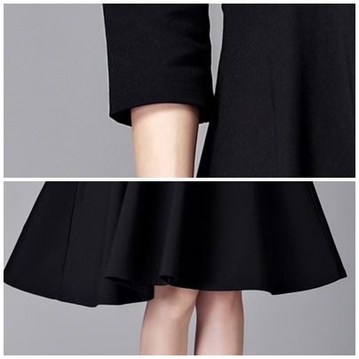 ミモレ丈ワンピース エレガントなオフショルダー ブラックドレス エレガント 大人 上品 結婚式二次会 お呼ばれ 2018年新作 婚活パーティー フォーマルドレス 披露宴 結婚式ドレス ウェディング 結婚式 謝恩会 パーティードレス 【700】