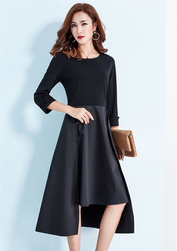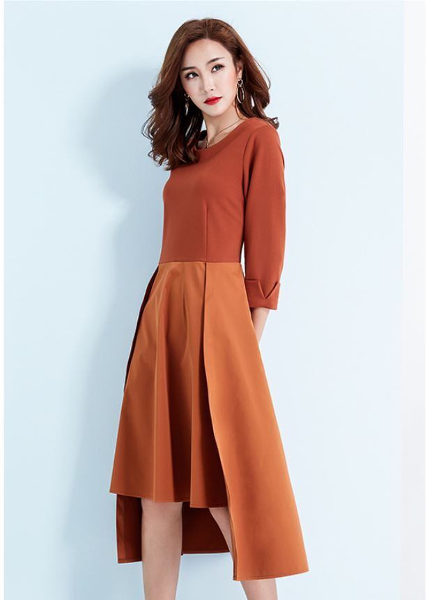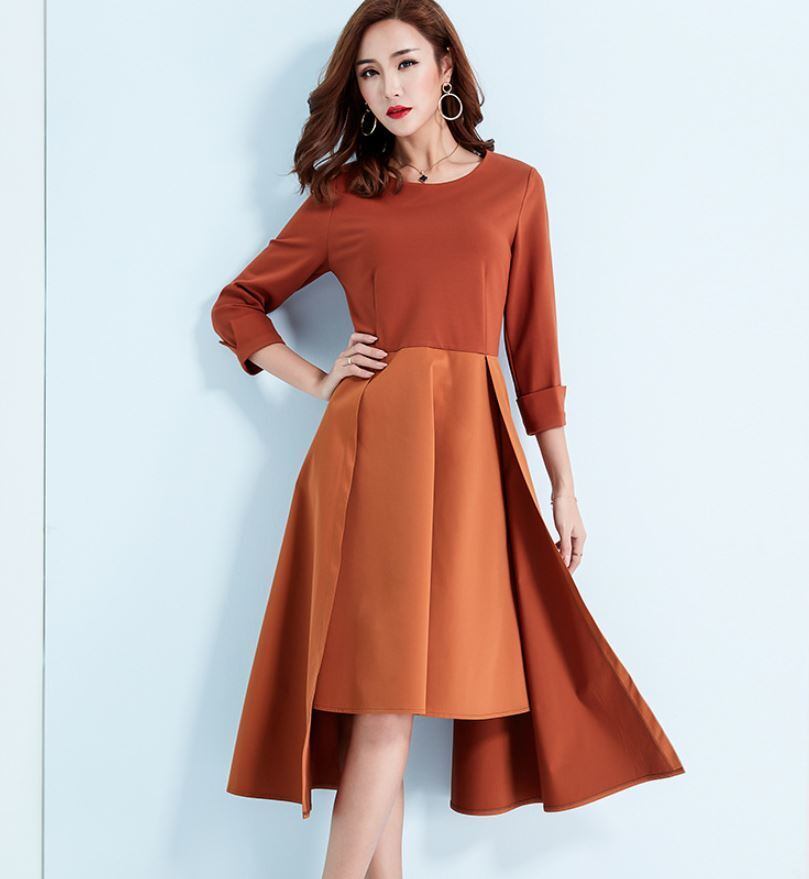 ミモレ丈 ソリッドカラー 7分袖 フレアスカート ドレス エレガント 大人 上品 結婚式二次会 お呼ばれ 2018年新作 婚活パーティー フォーマルドレス 披露宴 結婚式ドレス ウェディング 結婚式 謝恩会 パーティードレス 【704】