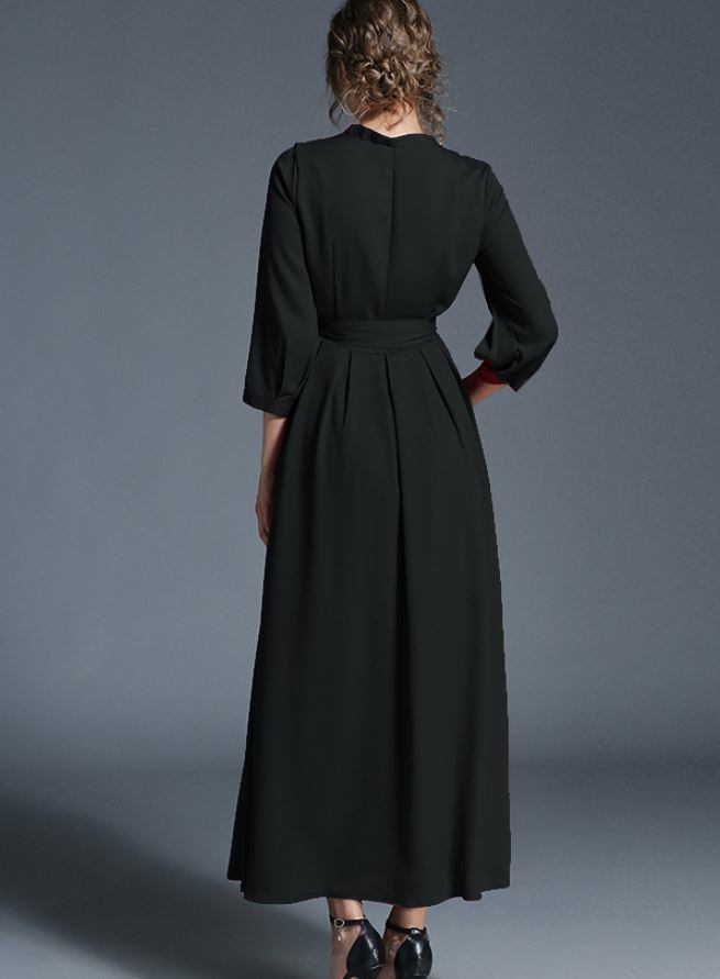 ロングドレス Vネック ウエストベルト ドレス エレガント 大人 上品 結婚式二次会 お呼ばれ 2018年新作 婚活パーティー フォーマルドレス 披露宴 結婚式ドレス ウェディング 結婚式 謝恩会 パーティードレス 【714】