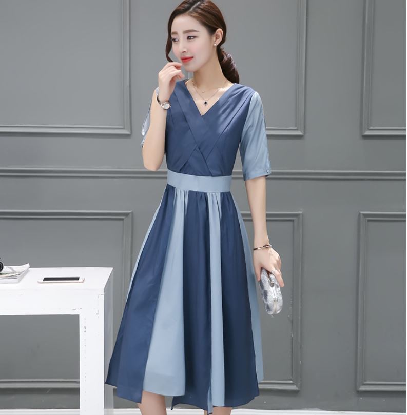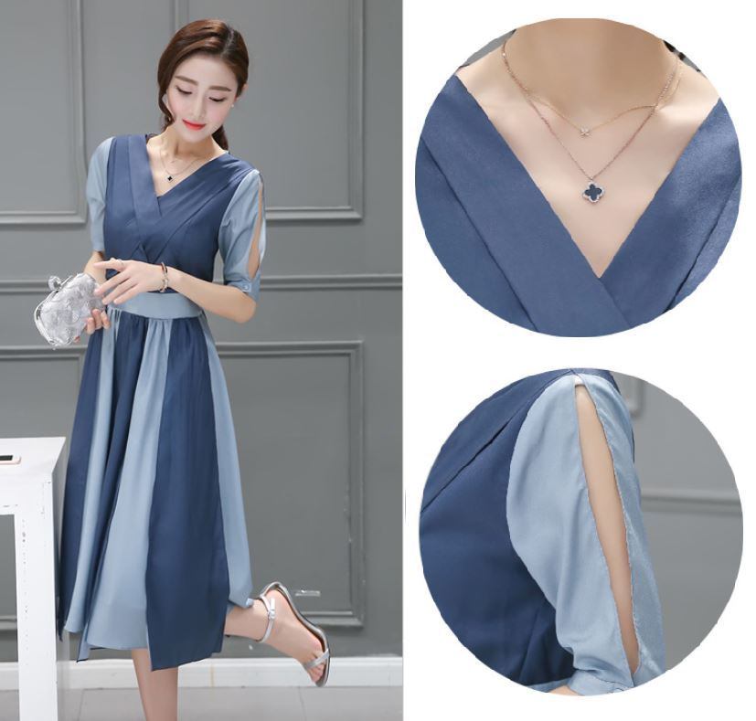 ロングドレス シフォン 半袖 Vネック ロングスカートドレス エレガント 大人 上品 結婚式二次会 お呼ばれ 2018年新作 婚活パーティー フォーマルドレス 披露宴 結婚式ドレス ウェディング 結婚式 謝恩会 パーティードレス 【721】