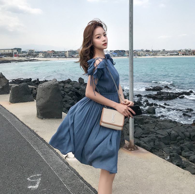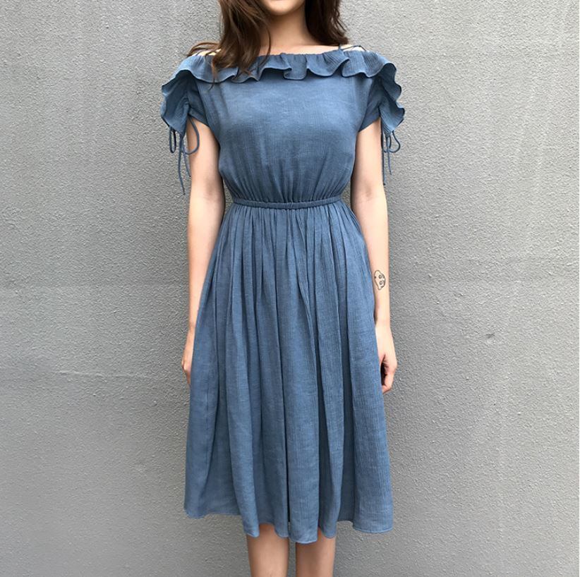ミモレ丈ワンピース コットンとリネンのオフショルドレス エレガント 大人 上品 結婚式二次会 お呼ばれ 2018年新作 婚活パーティー フォーマルドレス 披露宴 結婚式ドレス ウェディング 結婚式 謝恩会 パーティードレス 【724】