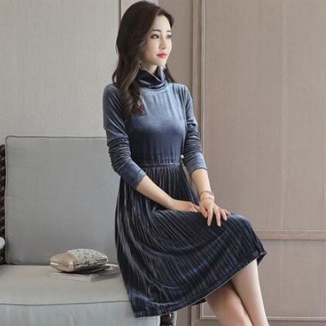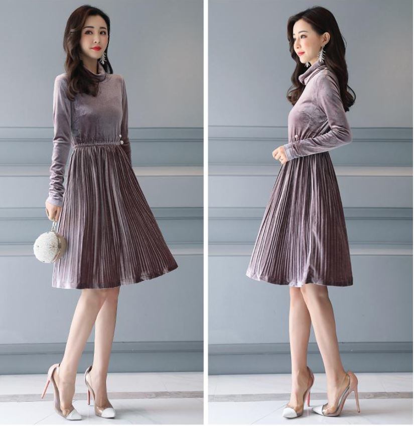 ショート丈ワンピース ベルベット プリーツ 長袖 ドレス エレガント 大人 上品 結婚式二次会 お呼ばれ 2018年新作 婚活パーティー フォーマルドレス 披露宴 結婚式ドレス ウェディング 結婚式 謝恩会 パーティードレス 【728】
