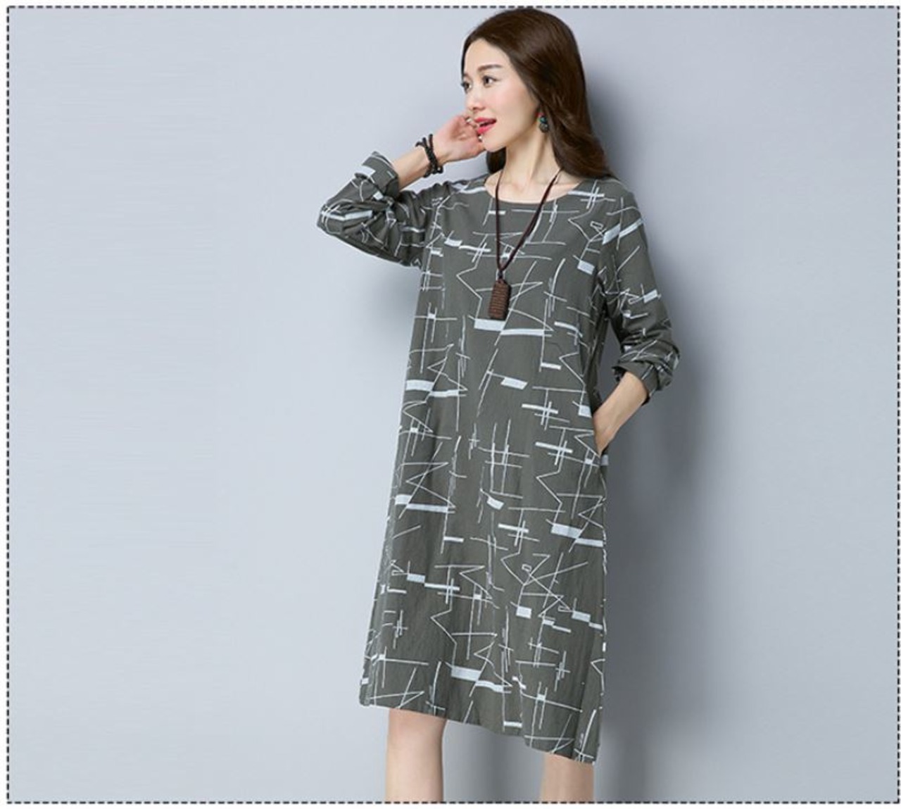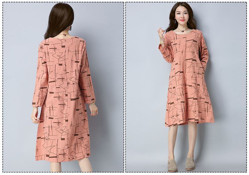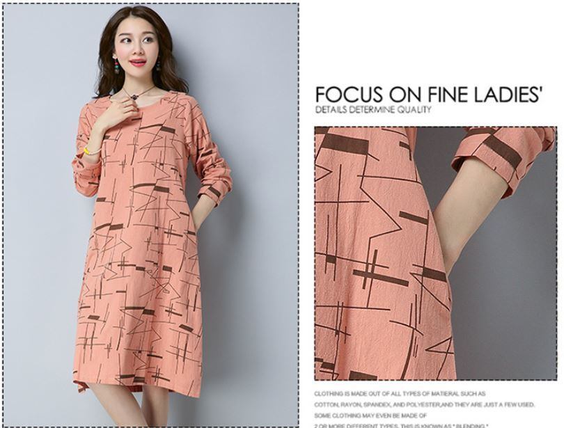 ミモレ丈ワンピース コットンとリネン プリント ラウンドネック ドレス エレガント 大人 上品 結婚式二次会 お呼ばれ 2018年新作 婚活パーティー フォーマルドレス 披露宴 結婚式ドレス ウェディング 結婚式 謝恩会 パーティードレス 【733】