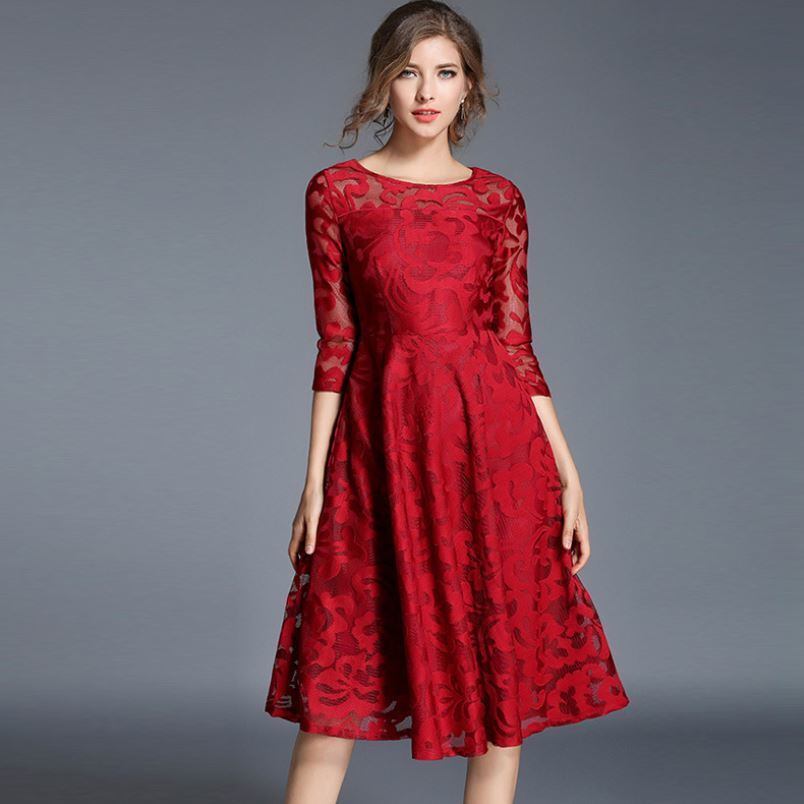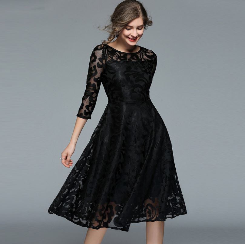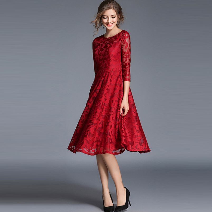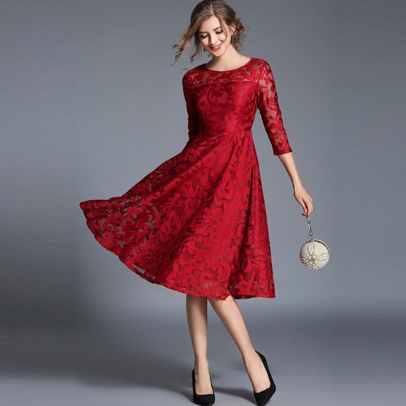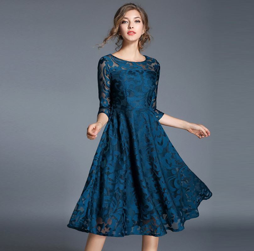 レースワンピース 7分袖 ロングドレス エレガント 大人 上品 結婚式二次会 お呼ばれ 2018年新作 婚活パーティー フォーマルドレス 披露宴 結婚式ドレス ウェディング 結婚式 謝恩会 パーティードレス 【735】
