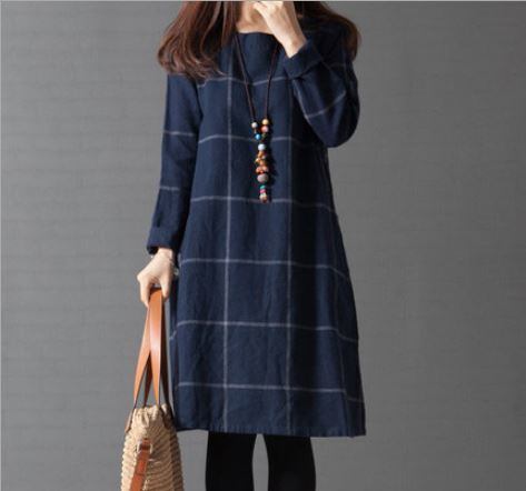ミモレ丈ワンピース 長袖 チェック柄 綿とリネン ドレス エレガント 大人 上品 結婚式二次会 お呼ばれ 2018年新作 婚活パーティー フォーマルドレス 披露宴 結婚式ドレス ウェディング 結婚式 謝恩会 パーティードレス 【736】