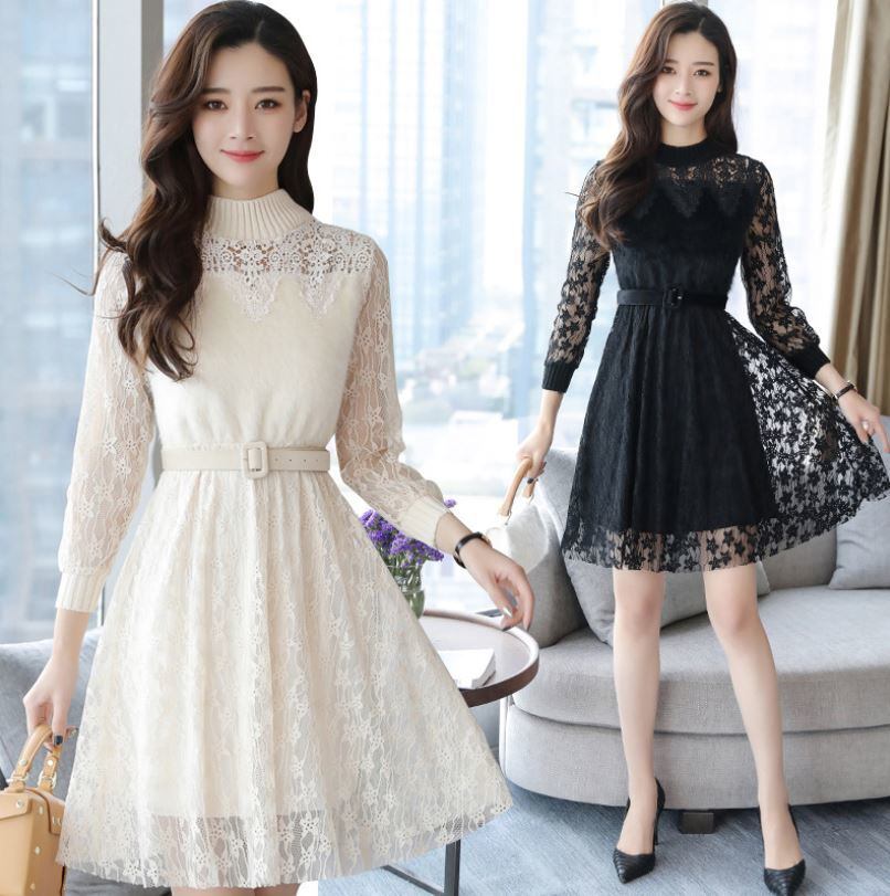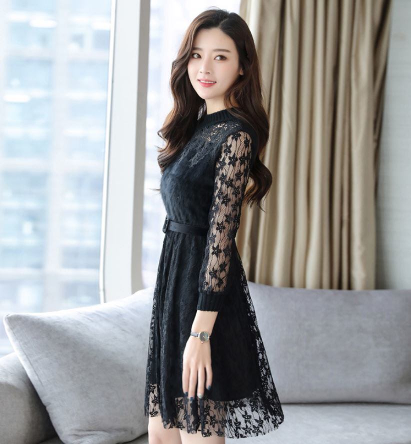 ショート丈ワンピース レース 長袖 ウエストスリムドレス エレガント 大人 上品 結婚式二次会 お呼ばれ 2018年新作 婚活パーティー フォーマルドレス 披露宴 結婚式ドレス ウェディング 結婚式 謝恩会 パーティードレス 【743】