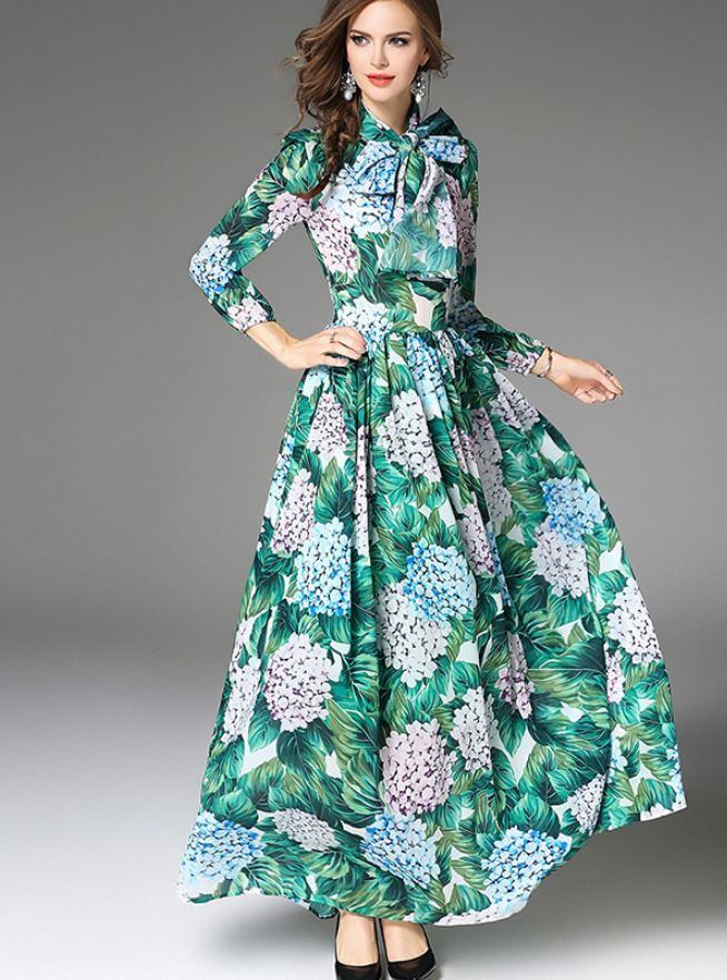 花柄ワンピース 長袖 プリント ドレス エレガント 大人 上品 結婚式二次会 お呼ばれ 2018年新作 婚活パーティー フォーマルドレス 披露宴 結婚式ドレス ウェディング 結婚式 謝恩会 パーティードレス 【748】