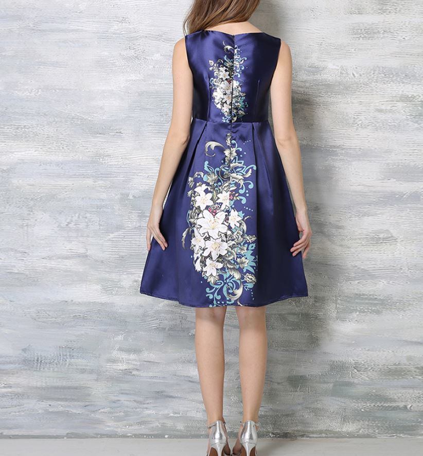 花柄ワンピース ノースリーブ プリント ドレス エレガント 大人 上品 結婚式二次会 お呼ばれ 2018年新作 婚活パーティー フォーマルドレス 披露宴 結婚式ドレス ウェディング 結婚式 謝恩会 パーティードレス 【749】