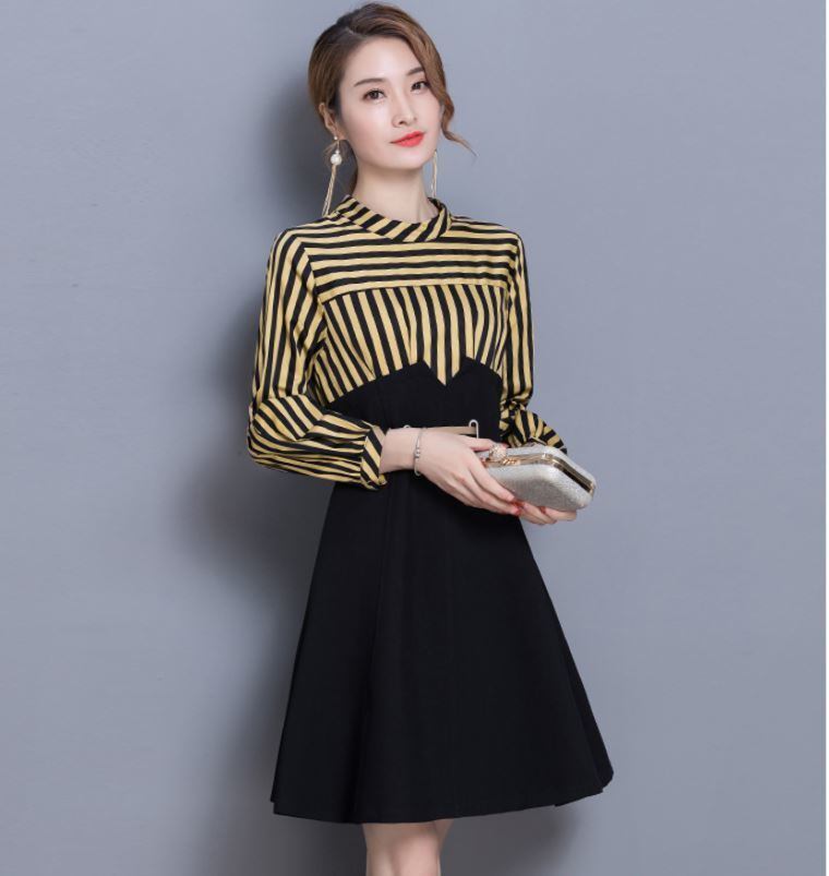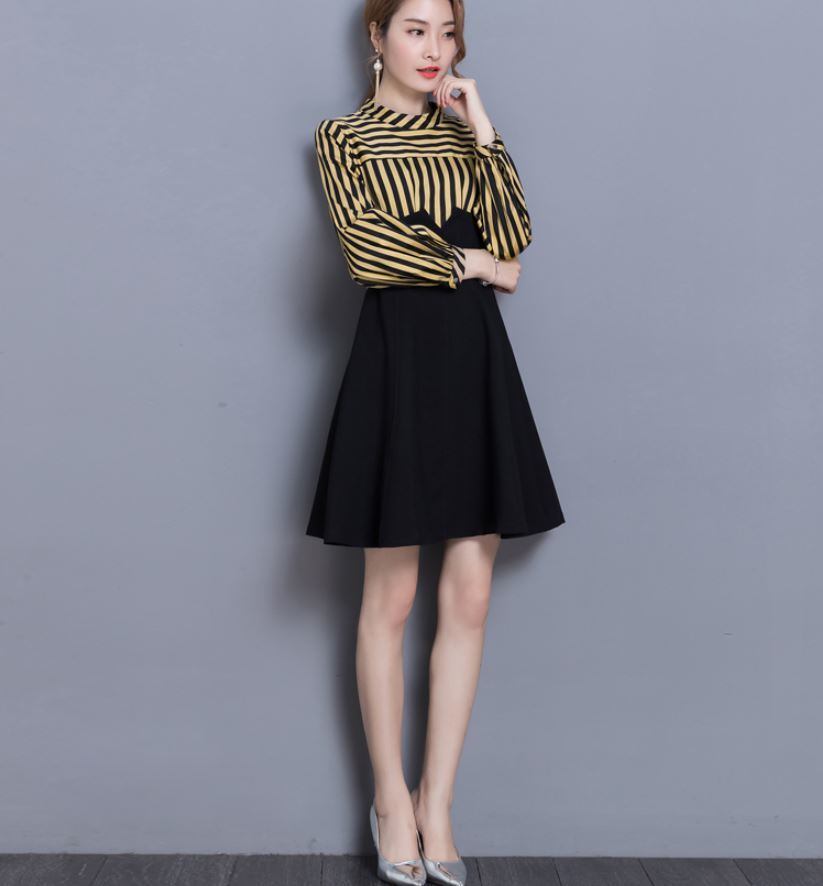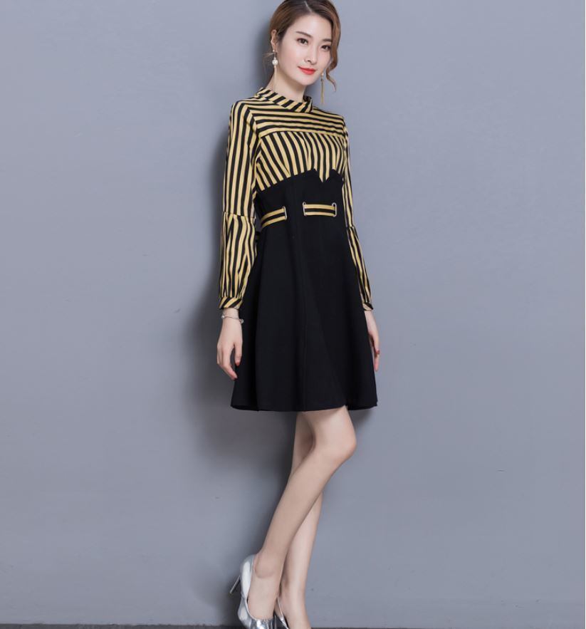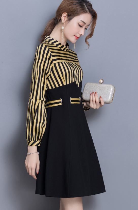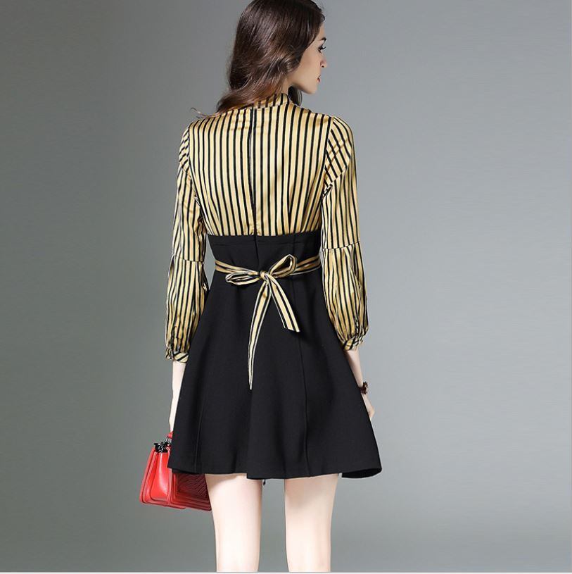 ショート丈ワンピース シフォン ストライプ 長袖 ドレス エレガント 大人 上品 結婚式二次会 お呼ばれ 2018年新作 婚活パーティー フォーマルドレス 披露宴 結婚式ドレス ウェディング 結婚式 謝恩会 パーティードレス 【750】