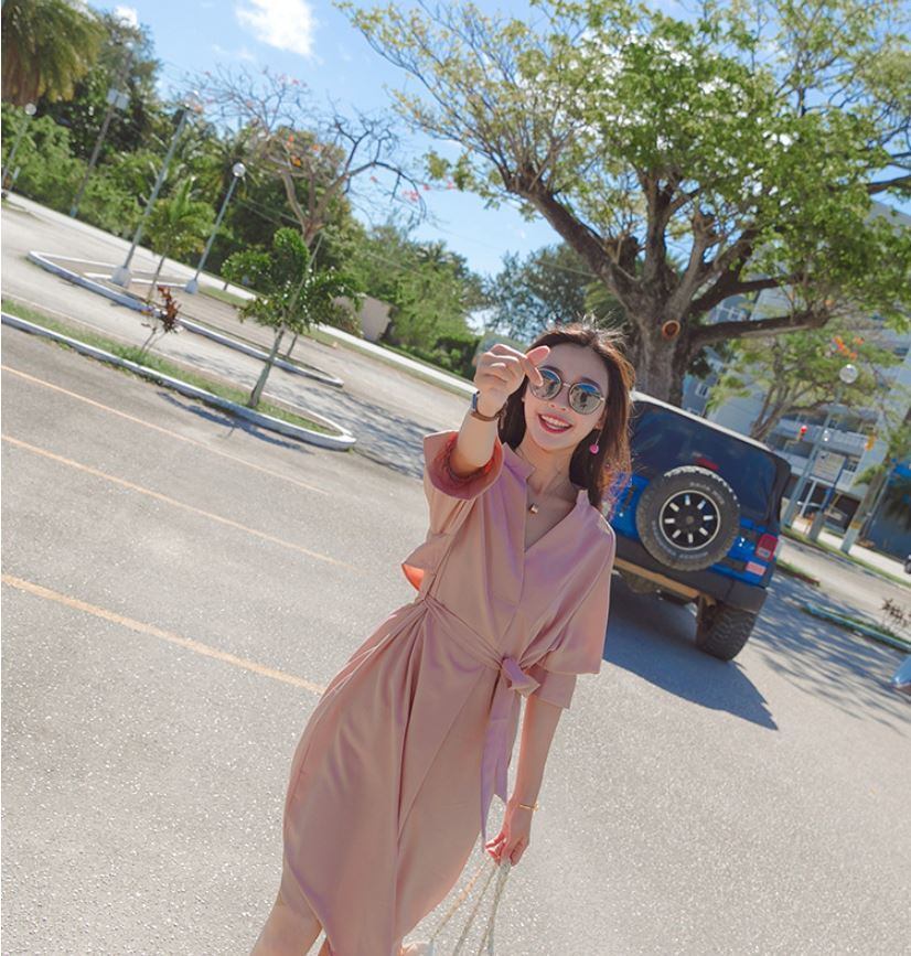 ミモレ丈ワンピース 半袖 ドレスシャツ エレガント 大人 上品 結婚式二次会 お呼ばれ 2018年新作 婚活パーティー フォーマルドレス 披露宴 結婚式ドレス ウェディング 結婚式 謝恩会 パーティードレス 【763】