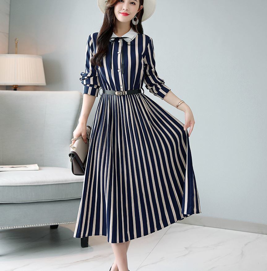 ロングドレス 長袖 ストライプ ドレス エレガント 大人 上品 結婚式二次会 お呼ばれ 2018年新作 婚活パーティー フォーマルドレス 披露宴 結婚式ドレス ウェディング 結婚式 謝恩会 パーティードレス 【776】