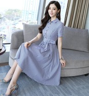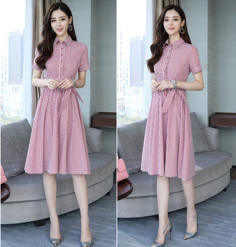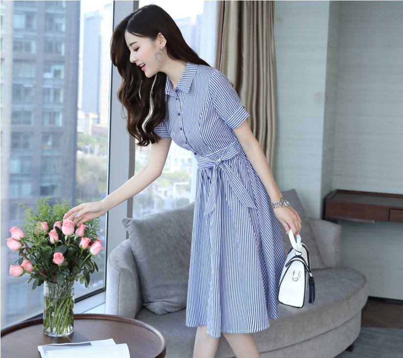 ミモレ丈ワンピース ストライプ 半袖 ドレス エレガント 大人 上品 結婚式二次会 お呼ばれ 2018年新作 婚活パーティー フォーマルドレス 披露宴 結婚式ドレス ウェディング 結婚式 謝恩会 パーティードレス 【778】
