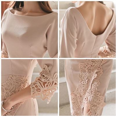 ミモレ丈ワンピース 7分袖 クロスボーダードレス エレガント 大人 上品 結婚式二次会 お呼ばれ 2018年新作 婚活パーティー フォーマルドレス 披露宴 結婚式ドレス ウェディング 結婚式 謝恩会 パーティードレス 【789】