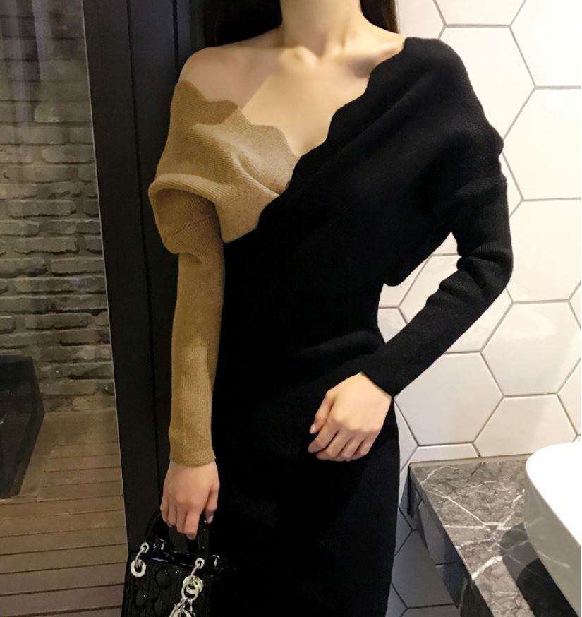 ショート丈ワンピース Vネック ニットドレス エレガント 大人 上品 結婚式二次会 お呼ばれ 2018年新作 婚活パーティー フォーマルドレス 披露宴 結婚式ドレス ウェディング 結婚式 謝恩会 パーティードレス 【791】