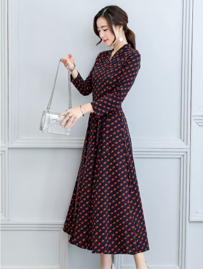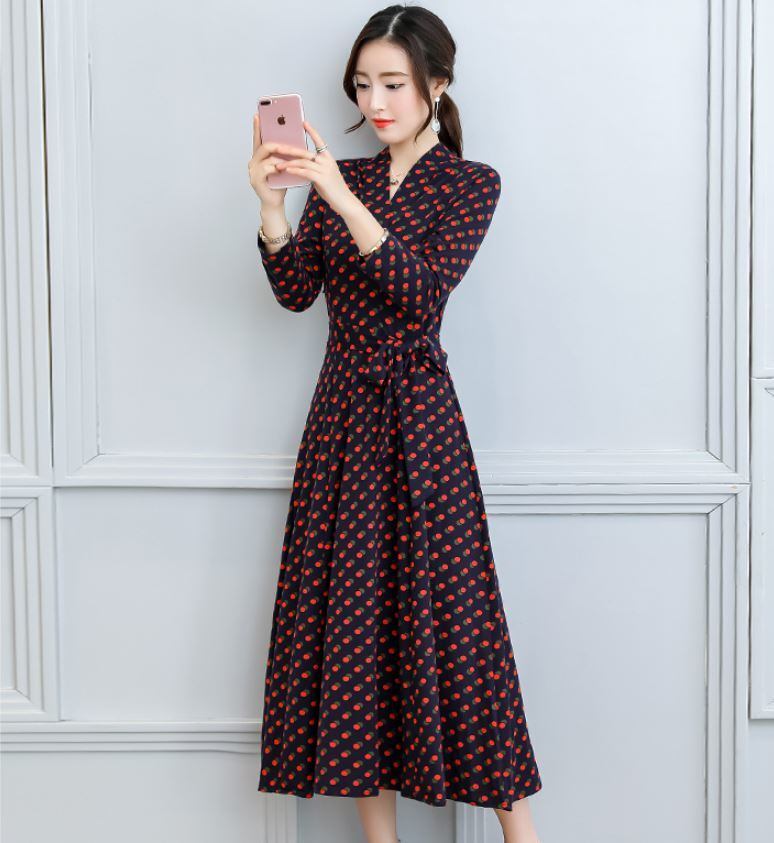 ロングドレス Vネック ドット ロングスリーブ エレガント 大人 上品 結婚式二次会 お呼ばれ 2018年新作 婚活パーティー フォーマルドレス 披露宴 結婚式ドレス ウェディング 結婚式 謝恩会 パーティードレス 【792】