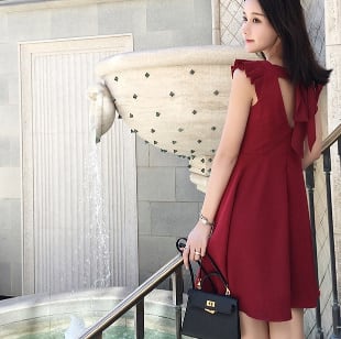 リボン フレア ミニ ワンピース リゾート 夏 3色【503】