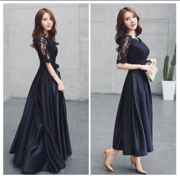 【取寄】 パーティードレス 結婚式 二次会 ワンピース 結婚式 お呼ばれ お呼ばれドレス 披露宴 お呼ばれドレス 袖あり ロング マキシ丈 ロングワンピ 20代 30代 40代 発表会 記念日 エレガント 清楚 きれい 大人 上品 フォーマルドレス ウェディング 謝恩会【N42】